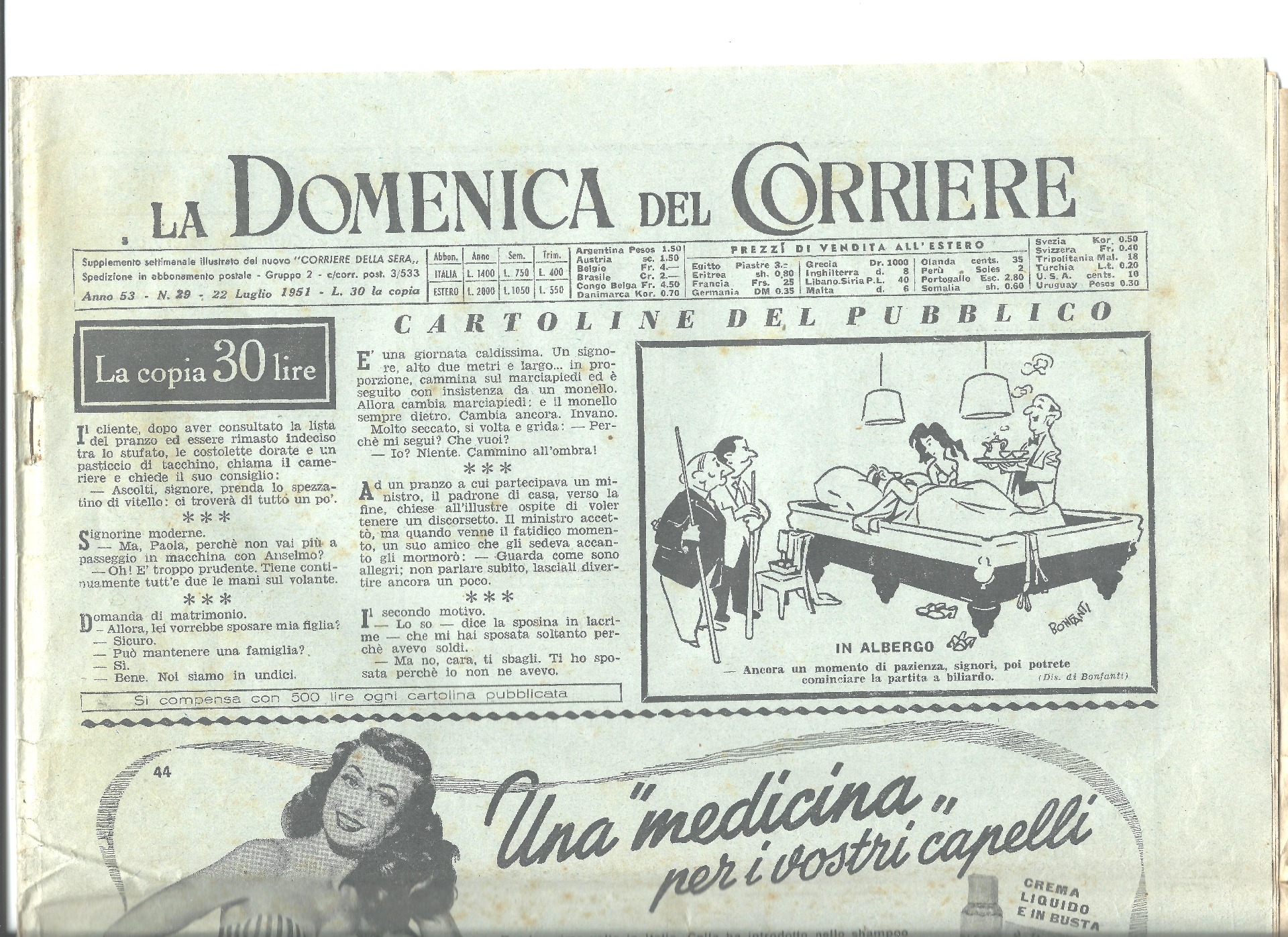 Partiamo con la prima pagina della Domenica del Corriere. Possiamo, leggendone i contenuti, e trarne le dovute considerazioni, opinioni, se vorrete.